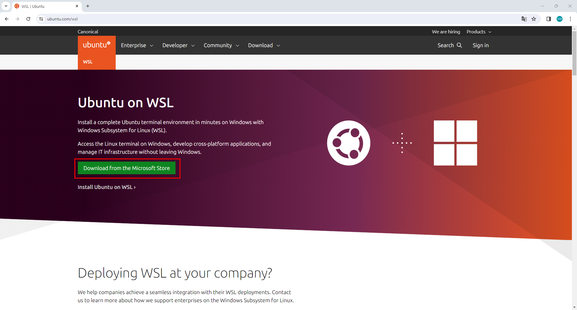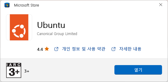 이 글 상단에서 WSL을 설명하기 이전에 첨부했던 링크는 Ubuntu 공식 페이지에서 WSL을 제공하고 설명하는 페이지인데, 바로 Microsoft Store에서 WSL을 설치할 수 있는 링크를 첨부해두었다.