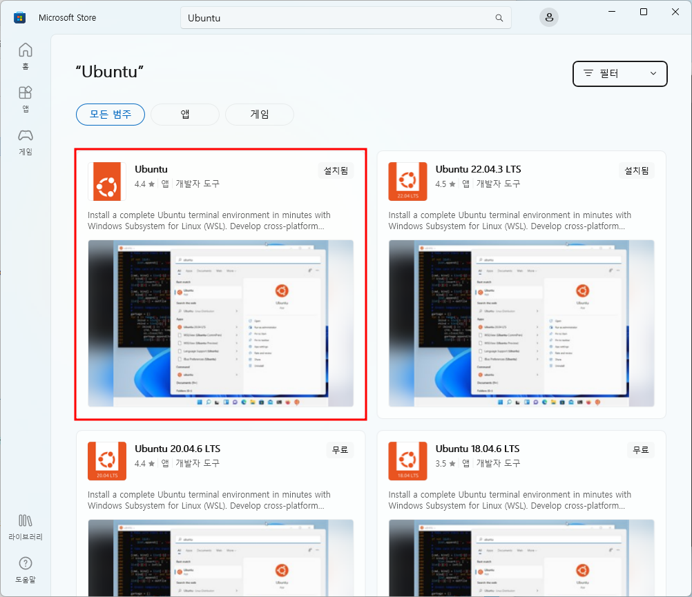 Microsoft Store에서 Ubuntu를 설치하는 방법이 첫 번째이고,